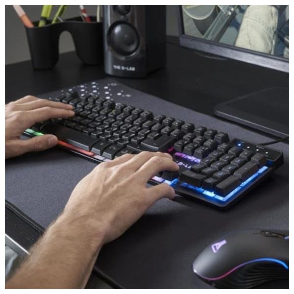 The G-Lab propose ici dans ce pack Combo Krypton un clavier membrane, qui vous mènera vers la victoire ! Grâce à l’antighosting oubliez les actions non intentionnelles ou les touches pas prises en comptes. D’un autre côté vous pourrez également profiter d’un 6key rollover qui va vous permettre d’activer 6 touches en même temps sans aucun problème. Vous pourrez ainsi vous accroupir, recharger ou changer d’arme en même temps, pour ainsi gagner du temps et toujours garder une longueur sur vos adversaires ! Enfin, les 12 touches raccourcis, vont vous permettre par exemple de lancer votre musique, l’arrêter ou passer à la piste suivante facilement.